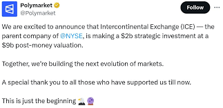New York Stock Exchange parent company invests $2 billion in Polymarket at $9 billion valuation | Fortune Crypto
