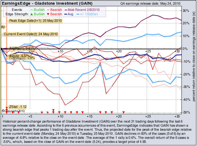 May 25, 2010 / M2 PRESSWIRE / BUYINS.NET, www.buyins.net , a provider of unique trading technologies, released a report on May 21, 2010 at 10:12 am PDT stating that Gladstone Investment (NASDAQ: GAIN) was expected to be lower after its earnings were released after the close on Monday, May 24, 2010. Click here to view the BUYINS.NET report: http://www.buyins.net/releases/?id=104845