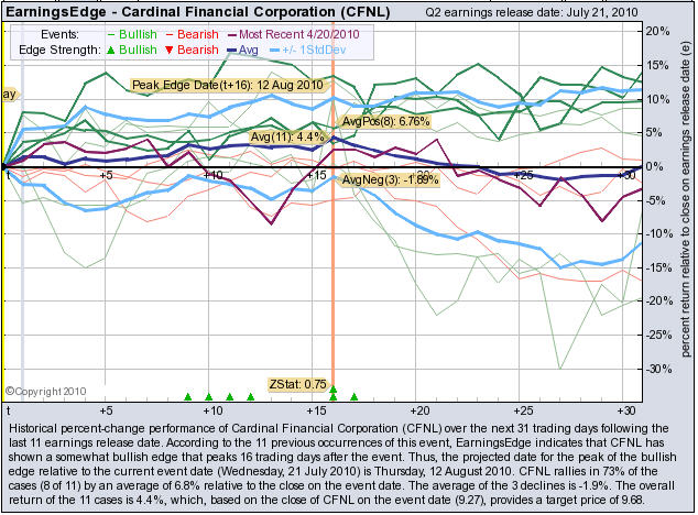 July 22, 2010 / M2 PRESSWIRE / BUYINS.NET, www.buyins.net , a provider of unique trading technologies, released a report on July 19, 2010 at 3:42 pm PDT stating that Cardinal Financial (NASDAQ: CFNL) was expected to be higher after its earnings were released after the close on Wednesday, July 21, 2010. Click here to view the BUYINS.NET report: http://www.buyins.net/releases/?id=116830