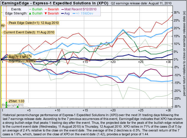 August 12, 2010 / M2 PRESSWIRE / BUYINS.NET, www.buyins.net , a provider of unique trading technologies, released a report on August 11, 2010 at 10:09 am PDT stating that Express-1 Expedited Solutions (NYSE: XPO) was expected to be higher after its earnings were released before the open on Tuesday, August 10, 2010. Click here to view the BUYINS.NET report: http://www.buyins.net/releases/?id=120397