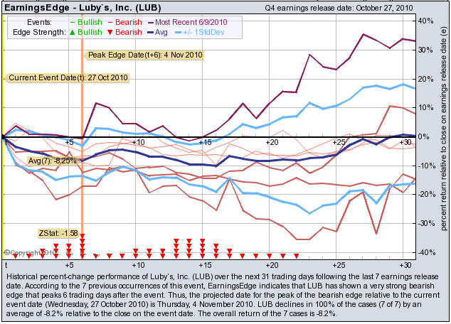 October 21, 2010 / M2 PRESSWIRE / BUYINS.NET, www.buyins.net , a provider of unique trading technologies, released a report on October 19, 2010 at 11:27 am PDT stating that Lubys (NYSE: LUB) was expected to be lower after its earnings were released after the close on Wednesday, October 20, 2010. Click here to view the BUYINS.NET report: http://www.buyins.net/releases/?id=128817