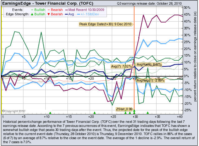 October 28, 2010 / M2 PRESSWIRE / BUYINS.NET, www.buyins.net , a provider of unique trading technologies, released a report on October 27, 2010 at 7:17 am PDT stating that Tower Financial (NASDAQ: TOFC) was expected to be higher after its earnings were released before the open on Thursday, October 28, 2010. Click here to view the BUYINS.NET report: http://www.buyins.net/releases/?id=130149