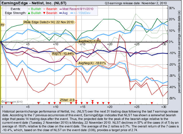 According to the 7 previous quarterly earnings reports, NLST has shown a bearish edge that peaks 14 trading days after the report. NLST drops in 57% of the cases (4 of 7) by an average of -18.6% relative to the date of the earnings release. At the time this story was written, NLST is -1.31% immediately after earnings were released.