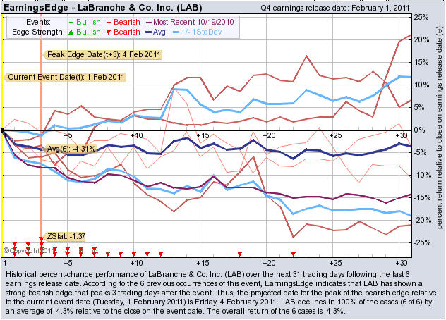 January 25, 2011 / M2 PRESSWIRE / BUYINS.NET, www.buyins.net , a provider of unique trading technologies, released a report on January 24, 2011 at 6:50 am PST stating that LaBranche and Co. (NASDAQ: LAB) was expected to be lower after its earnings were released before the open on Tuesday, January 25, 2011. Click here to view the BUYINS.NET report: http://www.buyins.net/releases/index.php?sym=lab&id=142265